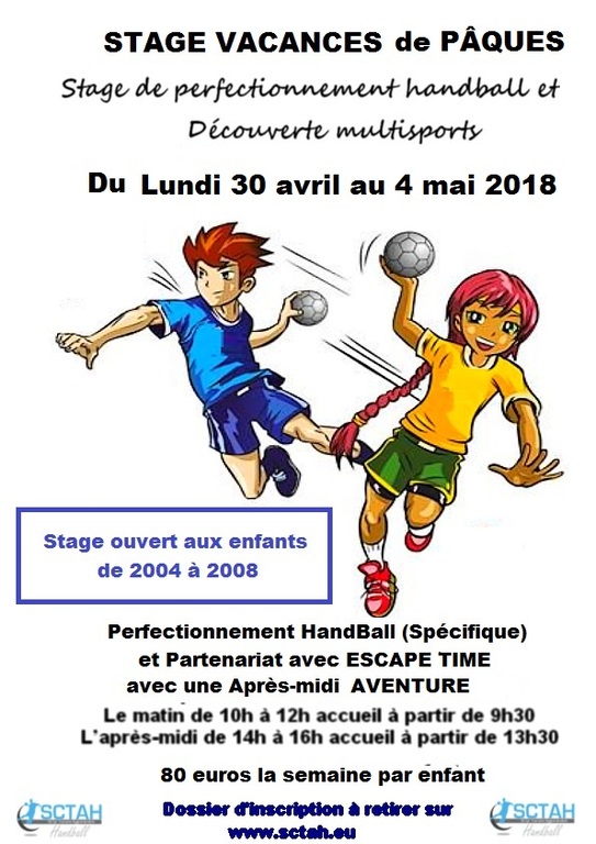 Vous pouvez vous inscrire en téléchargeant le dossier en pièce jointe ou en le retirant au bureau du club, ou auprès de vos entraîneurs, ou sur le site du club www.sctah.eu dans l'onglet documents (Stage Vacances de Pâques).