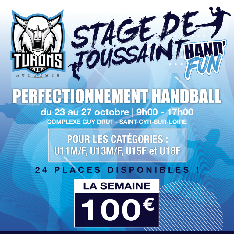 Inscriptions uniquement en ligne sur le lien ci-dessous, pour les U11 M/F, U13 M/F, U15/U18 F. Pour les U15M et U18M, un stage Hand Perf' en deuxième semaine, inscriptions sur le même lien.